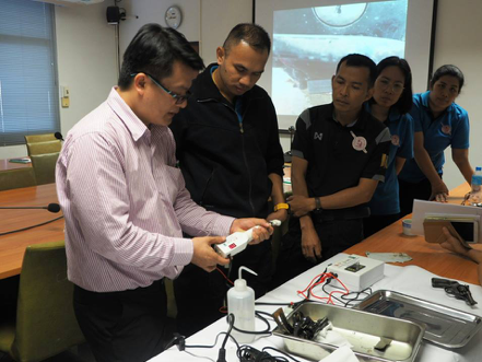 เมื่อวันที่ 11-13 กันยายน 2561 ที่ผ่านมา ผศ.ดร.วรากร ลิ่มบุตร และคณะจากศูนย์วิจัยความเป็นเลิศด้านการวิเคราะห์สารปริมาณน้อยเเละไบโอเซนเซอร์ (TAB-CoE) คณะวิทยาศาสตร์ ม.อ. ได้รับเกียรติเป็นวิทยากรบรรยายพิเศษเรื่อง “อุปกรณ์กัดผิวด้วยไฟฟ้าสำหรับเก็บกู้เลขหมายทะเบียนปืน” ในโครงการจัดการความรู้และถ่ายทอดเทคโนโลยีจากผลงานวิจัยและนวัตกรรม ประจำปี 2560 “การจัดการความรู้การวิจัยเพื่อการใช้ประโยชน์ด้านความมั่นคง” โดยคณะได้เดินทางไปยังสถานที่ต่าง ๆ ได้แก่ ศูนย์พิสูจน์หลักฐาน 3 ศูนย์พิสูจน์หลักฐานตำรวจ 102 ถ.สุรนาราย ต.จอหอ อ.เมือง จ.นครราชสีมา ศูนย์พิสูจน์หลักฐาน 4 เลขที่ 323 หมู่ 16 ต.ในเมือง อ.เมือง จ.ขอนแก่น และ ศูนย์พิสูจน์หลักฐาน 8 ศาลากลางจังหวัดสุราษฎร์ธานี ต.มะขามเตี้ย อ.เมือง จ.สุราษฎร์ธานี เพื่อบรรยายและสาธิตถ่ายทอดองค์ความรู้วิธีการนำอุปกรณ์กัดผิวด้วยไฟฟ้าสำหรับเก็บกู้เลขหมายทะเบียนปืนให้กับบุคลากรได้นำไปใช้ได้จริงในการทำงานเก็บกู้เลขหมายทะเบียนปืนในกองพิสูจน์หลักฐานต่าง ๆ