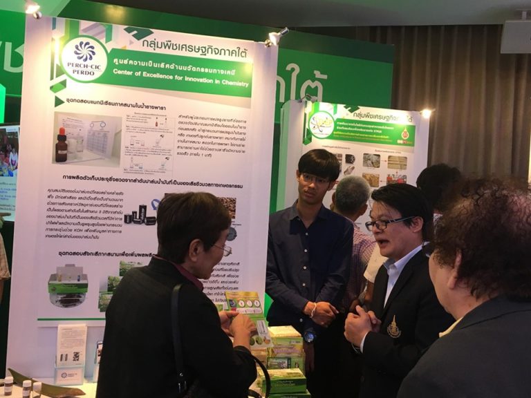 คณาจารย์ นักวิจัย นักศึกษา TAB-CoE คณะวิทยาศาสตร์ ม.อ เข้าร่วมงานสัมมนาวิชาการและแสดงนิทรรศการ เรื่อง “ศูนย์ความเป็นเลิศกับการพัฒนาพื้นที่ภาคใต้” ซึ่งงานดังกล่าวได้จัดขึ้นตามความร่วมมือระหว่างศูนย์ความเป็นเลิศด้านนวัตกรรมทางเคมี (PERCH-CIC) กับ กระทรวงการอุดมศึกษา วิทยาศาสตร์ วิจัยและนวัตกรรม (อว.) เป็นครั้งที่ 3 โดยภายในงานได้มีพิธีเปิดและการบรรยายพิเศษในหัวข้อเรื่อง “ขับเคลื่อนเศรษฐกิจไทยให้เติบโตอย่างยั่งยืนด้วยการวิจัยและนวัตกรรม” โดย รัฐมนตรีว่าการกระทรวงการอุดมศึกษา วิทยาศาสตร์ วิจัยและนวัตกรรม (อว.) งานสัมมนาวิชาการและแสดงนิทรรศการครั้งนี้ จัดขึ้นในวันพฤหัสบดีที่ 25 กรกฎาคม 2562 ณ โรงแรมบุรีศรีภู บูติก ถนนศรีภูวนารถ อำเภอหาดใหญ่ จังหวัดสงขลา