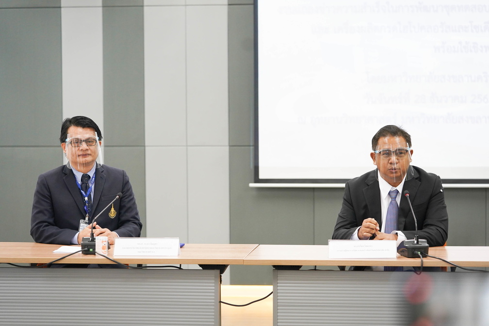 รองศาสตราจารย์ ดร.วรากร ลิ่มบุตร รองผู้อำนวยการศูนย์วิจัยความเป็นเลิศด้านการวิเคราะห์สารปริมาณน้อยและไบโอเซนเซอร์ พร้อมด้วยคณะผู้บริหารและนักวิจัยจากคณะวิทยาศาสตร์ มหาวิทยาลัยสงขลานครินทร์ เข้าร่วมงานแถลงข่าว “ความสำเร็จในการพัฒนาชุดทดสอบเพื่อตรวจคัดกรองการติดเชื้อไวรัสโคโรนา 2019 และ เครื่องผลิตกรดไฮโปคลอรัสและไฮโปคลอไรด์สำหรับฆ่าเชื้อไวรัส พร้อมใช้เชิงพาณิชย์”  โดยมหาวิทยาลัยสงขลานครินทร์ และบริษัทพันธมิตร ในวันจันทร์ที่ 28 ธันวาคม 2563 เวลา 13.00 น. ณ ห้อง SEA SUN ชั้น LG อุทยานวิทยาศาสตร์ มหาวิทยาลัยสงขลานครินทร์ ต.ทุ่งใหญ่ อ.หาดใหญ่ จ.สงขลา ด้านรองศาสตราจารย์ ดร.วรากร ลิ่มบุตร พูดถึงนวัตกรรมตัวนี้ว่า “จากข้อมูลที่เรามีอยู่ในเชิงวิชาการเราพบว่า กรดไฮโปคลอรัส มันมีประสิทธิภาพในการฆ่าเชื้อโรคต่างๆ ได้ ยกตัวอย่างเช่น ไวรัสสายพันธุ์ใหม่ H1N1, อีโคไลหรือซาลโมเนลลา หรือแม้กระทั่งรา ตัวเครื่องนี้สามารถนำไปใช้สำหรับการทำความสะอาดบริเวณพื้นที่ อุปกรณ์ หรือวัสดุ ภายในห้องไม่ว่าจะเป็นภายในหรือภายนอกเราก็สามารถใช้เครื่องตัวนี้ในการทำความสะอาดเพื่อฆ่าเชื้อโรคต่างๆ ได้”