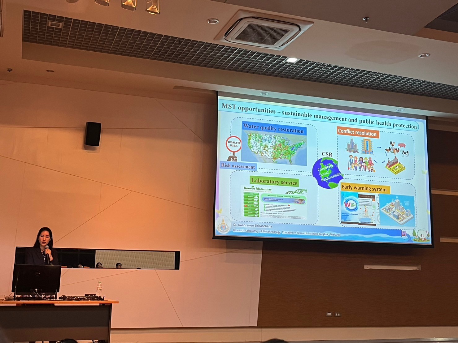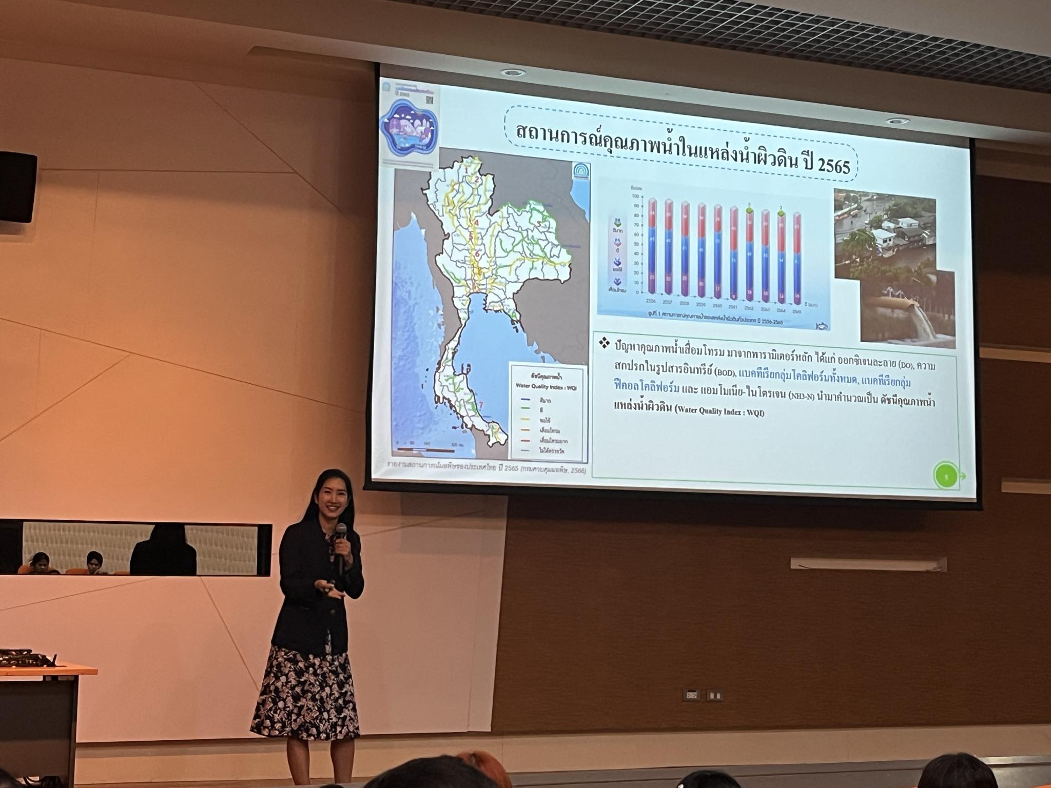 บรรยากาศการบรรยายในกิจกรรม TAB–CoE Research Forum ครั้งที่ 5 ในหัวข้อ Deciphering the Source: Tracking Water Pollution Through Microbial Analysis “ใครทำน้ำเสีย…รู้ได้ด้วยจุลชีพ” โดย ดร.ขวัญรวี สิริกาญจน นักวิจัยเชี่ยวชาญ ห้องปฏิบัติการวิจัยเทคโนโลยีชีวภาพ สถาบันวิจัยจุฬาภรณ์ เป็นวิทยากรผู้บรรยาย ณ ห้องประชุม EILA 5 อาคารศูนย์ทรัพยากรการเรียนรู้ ชั้น 8 มหาวิทยาลัยสงขลานครินทร์ ในวันอังคาร ที่ 12 ธันวาคม 2566 เวลา 10.00-11.30 น. ที่ผ่านมา