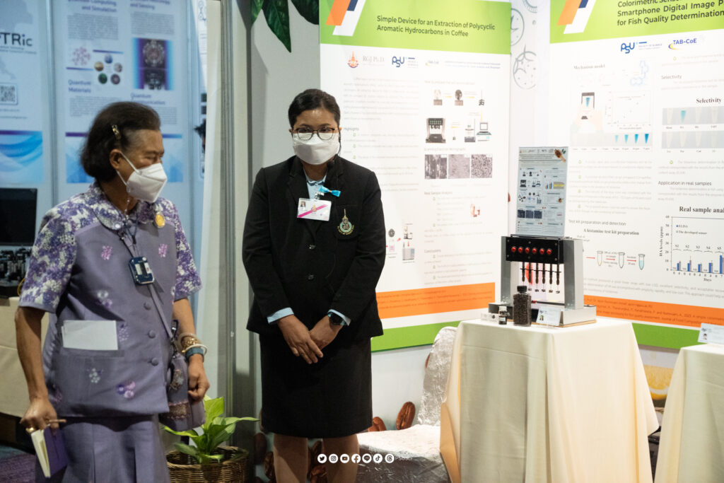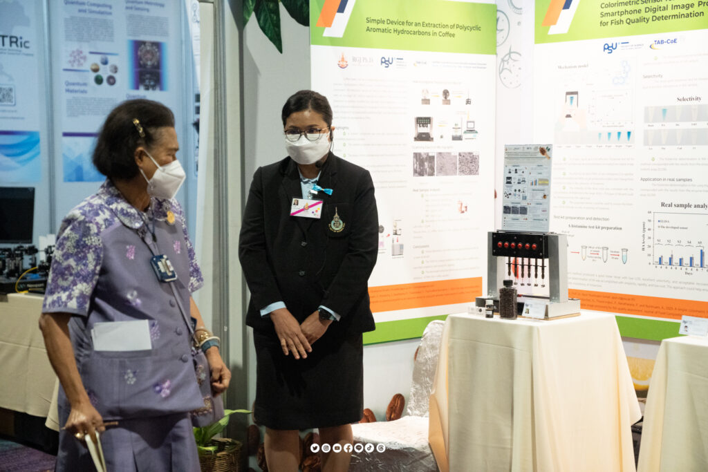 รองศาสตราจารย์ ดร.จงดี บูรณชัย ผู้อำนวยการ TAB-CoE และ รองศาสตราจารย์ ดร.วรากร ลิ่มบุตร รองผู้อำนวยการ TAB-CoE เป็นตัวแทนคณาจารย์ในศูนย์วิจัยฯ เฝ้ารับเสด็จ สมเด็จพระกนิษฐาธิราชเจ้า กรมสมเด็จพระเทพรัตนราชสุดาฯ สยามบรมราชกุมารี ในโอกาสทรงเป็นประธานเปิดงานประชุมวิชาการวิทยาศาสตร์และเทคโนโลยีแห่งประเทศไทย ครั้งที่ 49 ภายใต้หัวข้อ “SDGs FOR THE BENEFIT OF MANKIND” ระหว่างวันที่ 23 – 25 มกราคม 2567 ณ ศูนย์ประชุมนานาชาติฉลองสิริราชสมบัติครบ ๖๐ ปี มหาวิทยาลัยสงขลานครินทร์ วิทยาเขตหาดใหญ่ จังหวัดสงขลา โดยภายในกิจกรรมการประชุม มีการนำเสนอผลงานวิจัยส่วนหนึ่ง จากคณาจารย์ภายใน TAB-CoE ซึ่งเป็นแนวทางของการบูรณาการความรู้สู่การพัฒนาด้านวิทยาศาสตร์และเทคโนโลยีให้ยั่งยืนต่อไป