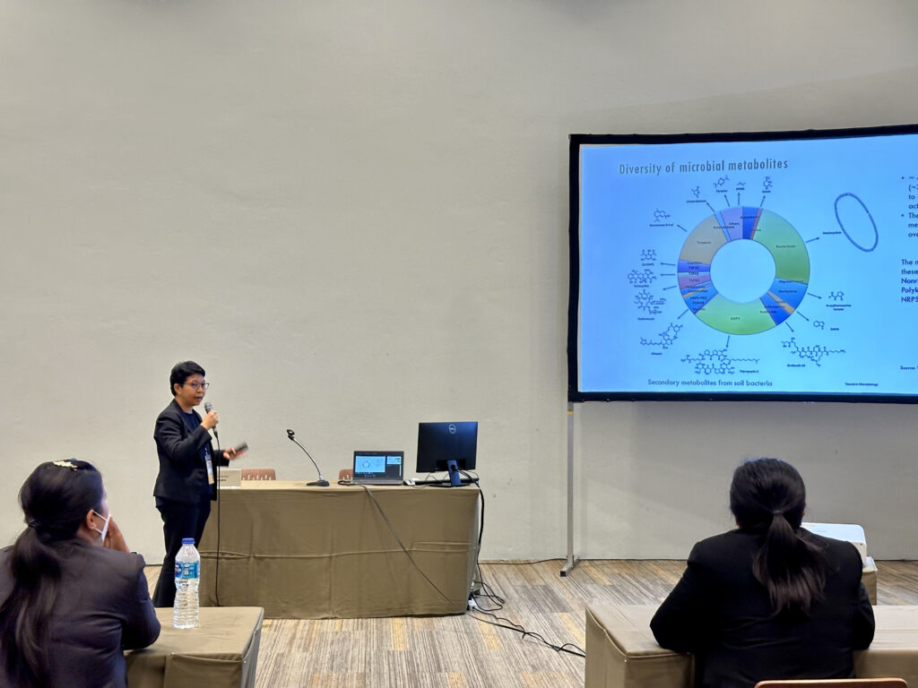 - ดร. วนิชา วิชัย จาก ศูนย์พันธุวิศวกรรมและเทคโนโลยีชีวภาพแห่งชาติ (ไบโอเทค) บรรยายในหัวข้อ “FROM MICROBIAL DIVERSITY TO SUSTAINABLE SOLUTIONS IN AGRICULTURE”