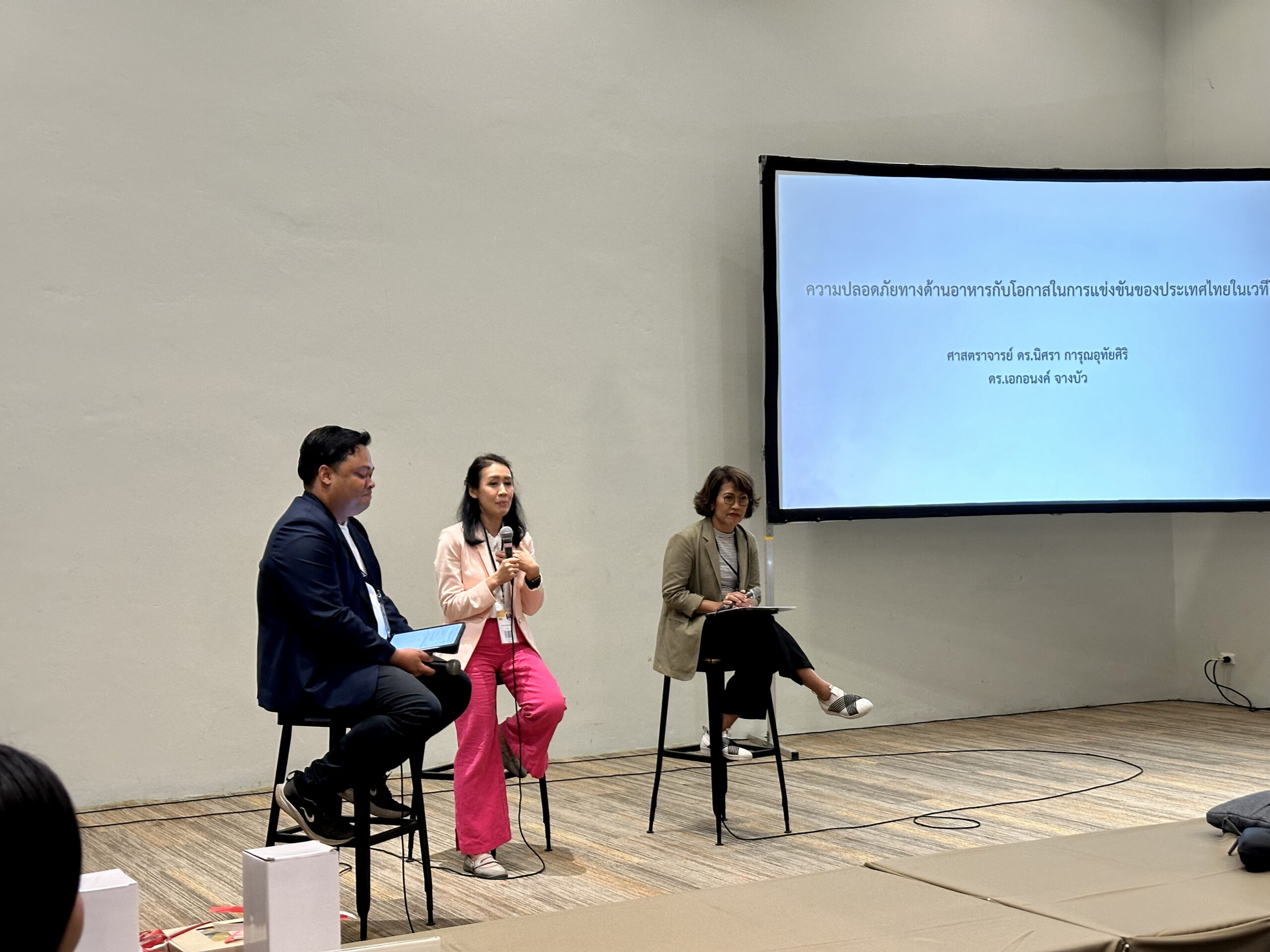 นอกจากนี้ ยังมีเสวนา ในหัวข้อ “ความปลอดภัยทางด้านอาหารกับโอกาสในการแข่งขันของประเทศไทยในเวทีโลก” ซึ่งได้รับเกียรติจาก ศาสตราจารย์ ดร.นิศรา การุณอุทัยสิริ นักวิจัยอาวุโส จากศูนย์พันธุวิศวกรรมและเทคโนโลยีชีวภาพแห่งชาติ (ไบโอเทค) และ ดร.เอกอนงค์ จางบัว ผู้อำนวยการฝ่าย เมืองนวัตกรรมอาหาร (Food Innopolis) สำนักงานพัฒนาวิทยาศาสตร์และเทคโนโลยีแห่งชาติ (สวทช.)