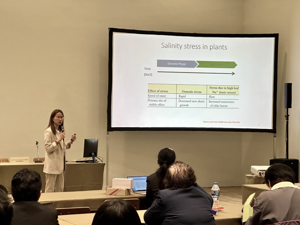 - ผศ.ดร. เมศยา ธิติศักดิ์สกุล จาก มหาวิทยาลัยขอนแก่น บรรยายในหัวข้อ “DECIPHERING RICE GROWTH AND PRODUCTIVITY UNDER SALINITY STRESS –FROM METABOLIC PROGRAMMING TO POSTHARVEST GRAIN QUALITY”