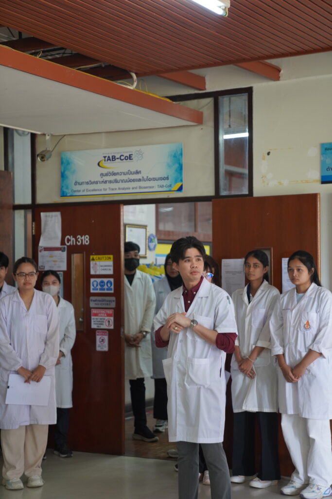อ.ดร.สัณฐิศักดิ์ ขุมเงิน (อาจารย์วิจัยและสมาชิกTAB-CoE) นำทีมนักศึกษาและนักวิจัยจาก TAB-CoE ร่วมต้อนรับและให้ความรู้แก่ผู้สนใจจากโครงการอบรมเชิงปฏิบัติการ “เยี่ยมชมห้องปฏิบัติการต้นแบบ (ESPReL)” ซึ่งห้องปฏิบัติการของ TAB-CoE ได้ผ่านการตรวจประเมินและรับรองห้องปฏิบัติการในรูปแบบ Peer Evaluation และได้รับการรับรองเป็นห้องปฏิบัติการต้นแบบ กิจกรรมจัดขึ้นในวันจันทร์ที่ 22 เมษายน 2567 เวลา 09.00 – 11.00 น. ณ ห้องปฏิบัติศูนย์วิจัยความเป็นเลิศด้านการวิเคราะห์สารปริมาณน้อยและไบโอเซนเซอร์ (CH318) ชั้น 3 อาคารเคมี โดยโครงการนี้ได้รับความสนใจทั้งจาก นักวิจัย นักวิทยาศาสตร์ นักศึกษาบัณฑิตศึกษา ทั้งภายในและภายนอกคณะวิทยาศาสตร์ เข้าร่วมเยี่ยมชม และสามารถนำความรู้ นโยบาย แนวปฏิบัติของห้องปฏิบัติการตัวอย่างไปเป็นแบบอย่างในการพัฒนาปรับปรุงห้องปฏิบัติการให้มีความปลอดภัยและเป็นไปตามมาตรฐานต่อไป