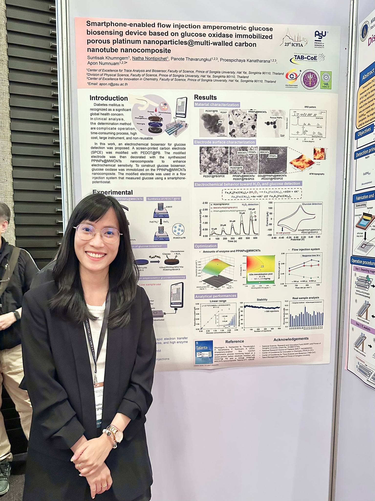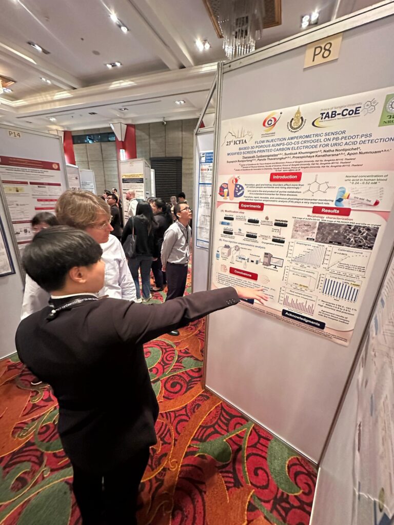 คณาจารย์จาก TAB-CoE นำทีมโดย อ.ดร. สัณฐิศักดิ์ ขุมเงิน และ อ.ดร. อัจฉรา ลอแม และนักศึกษาจาก TAB-CoE เข้าร่วมนำเสนอผลงานวิจัยแบบโปสเตอร์ในงานประชุมวิชาการระดับนานาชาติในงาน The 23rd International Conference on Flow Injection Analysis and Related Techniques (ICFIA 2024) ระหว่างวันที่ 3-7 ธันวาคม 2567 ณ โรงแรมดิเอ็มเพรส อ.เมือง จ.เชียงใหม่ โดยมีงานวิจัยมีดังนี้
