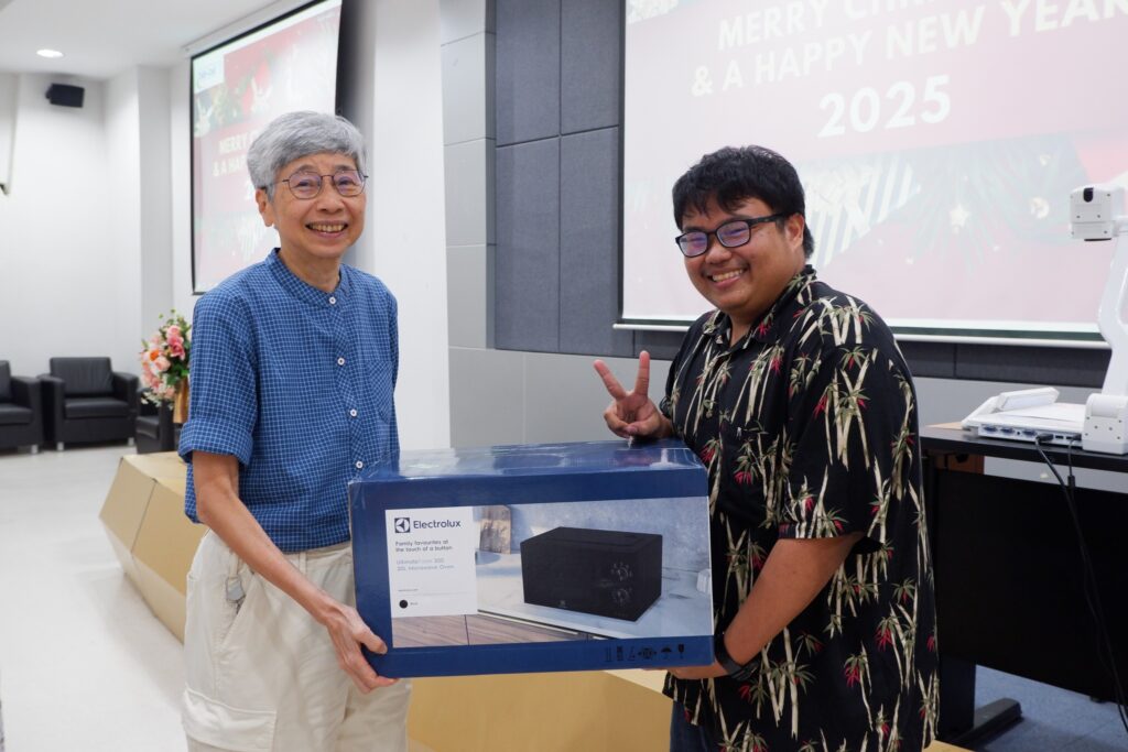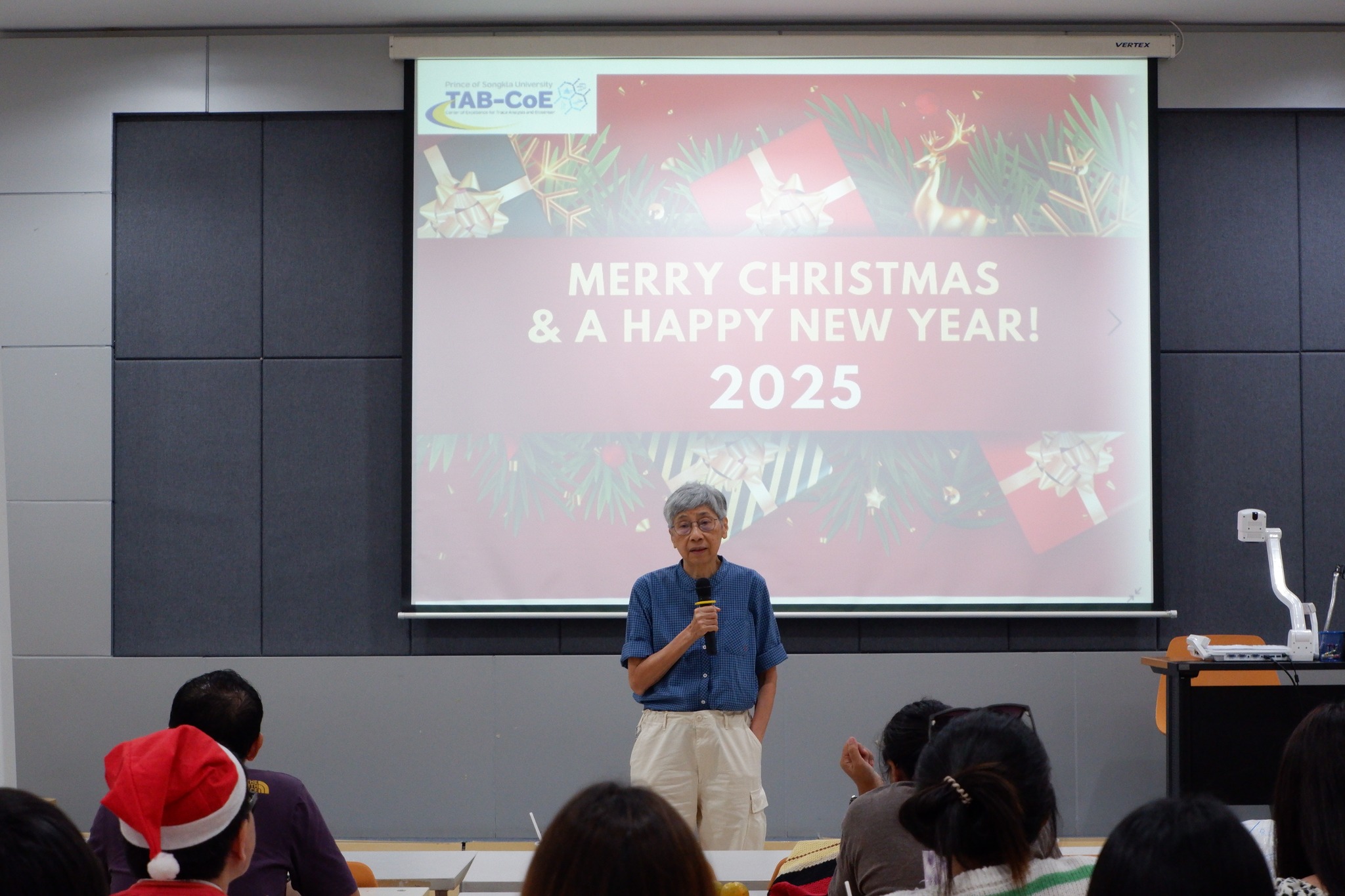 เมื่อวันเสาร์ที่ 21 ธันวาคม 2567 ศูนย์วิจัยความเป็นเลิศด้านการวิเคราะห์สารปริมาณน้อยเเละไบโอเซนเซอร์ (TAB-CoE) ได้จัดกิจกรรมเพื่อเฉลิมฉลอง ในเทศกาลปีใหม่ประจำปี 2568 โดยมีกิจกรรมการแข่งกีฬา ในช่วงเช้า และ กินเลี้ยง แลกของขวัญระหว่างนักศึกษา การจับของขวัญจากศูนย์วิจัยฯ ในช่วงเย็น นอกจากนี้มอบกระเช้าอวยพรปีใหม่ ให้แด่ รศ.ดร.เพริศพิชญ์ คณาธารณา และ ศ.ดร.ปณต ถาวรังกูร ที่ปรึกษาศูนย์วิจัยความเป็นเลิศฯ ซึ่งอาจารย์ได้อวยพรปีใหม่ให้แก่นักศึกษาและคณาจารย์ทุกท่าน เนื่องในวาระขึ้นปีใหม่ 2568