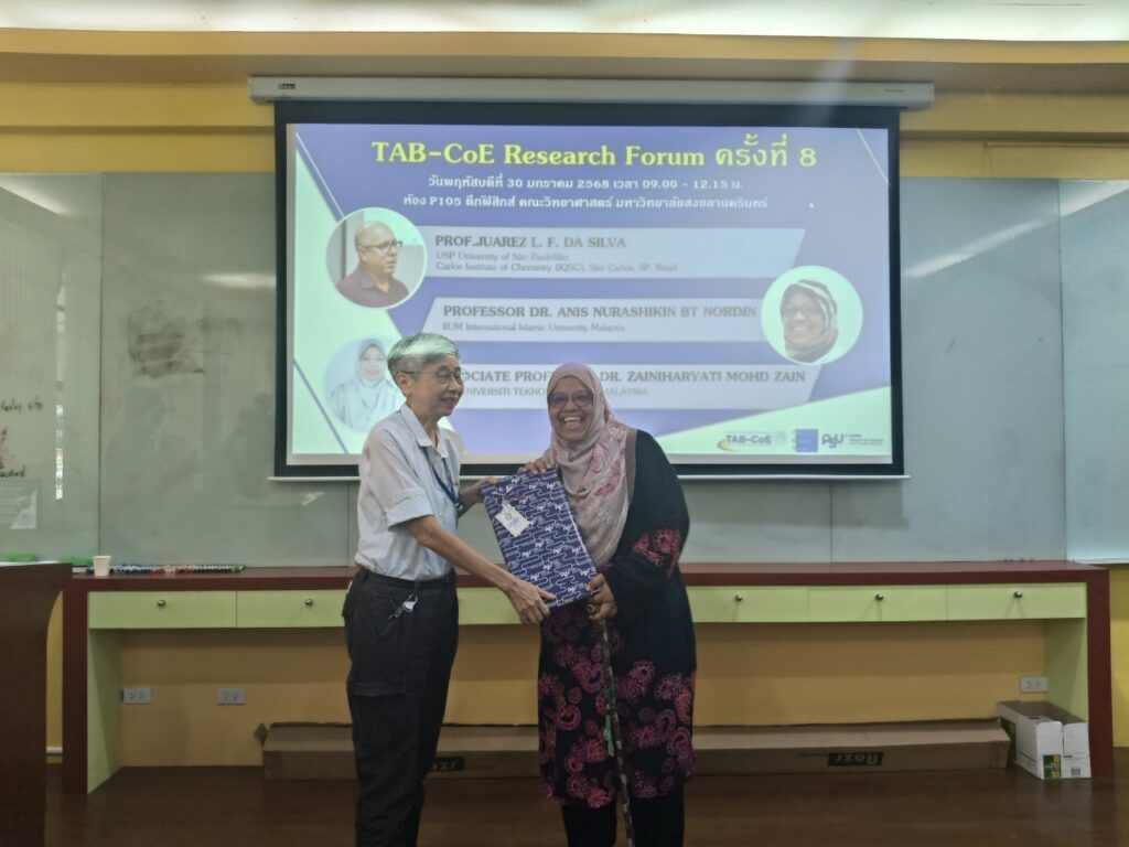 บรรยากาศการบรรยายในกิจกรรม TAB–CoE Research Forum ครั้งที่ 8 โดยได้รีบเกียรติจากผู้บรรยายทั้งหมด 3 ท่าน ดังนี้