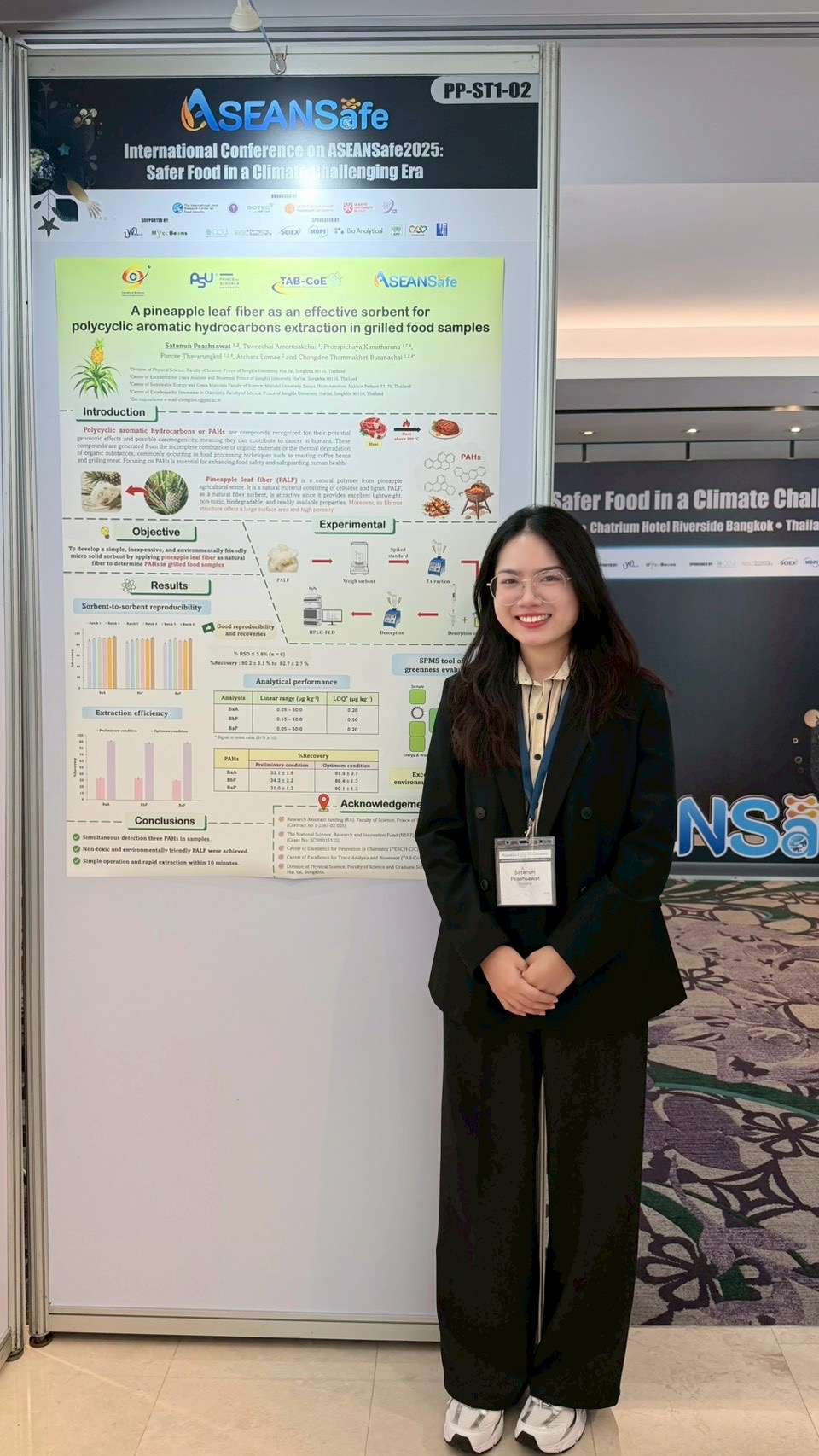 6.งานวิจัยเรื่อง “A pineapple leaf fiber as an effective sorbent for polycyclic aromatic hydrocarbons extraction in grilled food samples” นำเสนอโดย นางสาวศตนันท์ เพ็ชรสวัสดิ์