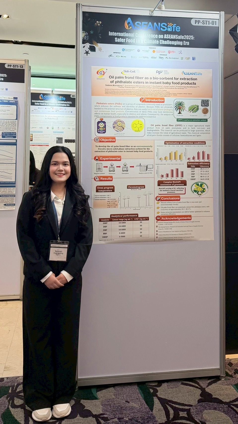 7.งานวิจัยเรื่อง “Oil palm frond fiber as a bio-sorbent for extraction of phthalate esters in instant baby food products” นำเสนอโดย นางสาวศดานันท์ เมืองสง