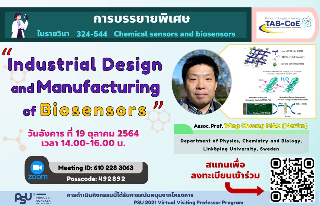 TAB-CoE would like to invite you to attend the special talk entitled “Industrial design and manufacturing of biosensors” given by Associate Professor Wing Cheung MAK (Martin) from Department of Physics, Chemistry and Biology, Linköping University, Sweden via Zoom Meeting on Tuesday 19th October 2021, 2.00 – 4.00 pm. Registration can be made online at https://forms.gle/FHbwhKpKvZ6dCk2L8 or QR code.