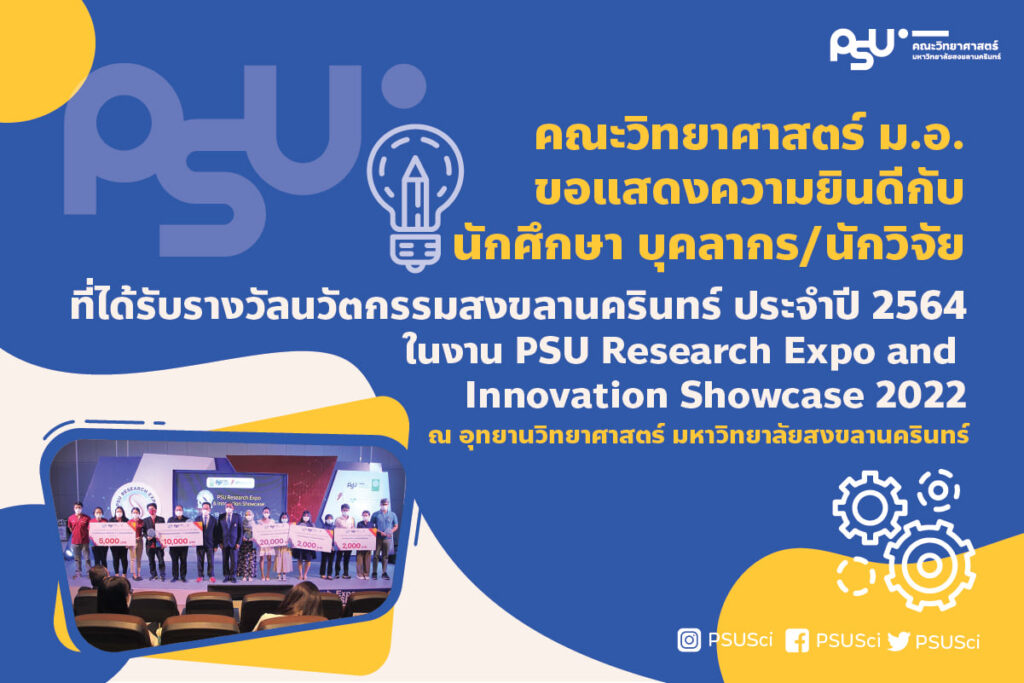 TAB-CoE members, Faculty of Science, received honorable mention awards in research entitled “A flow injection electroanalytical device” by Miracle of Electrochemistry team from PSU Research Expo and Innovation Showcase 2022 during 17-18 February 2022 at Southern Thailand Science Park, Prince of Songkla University.