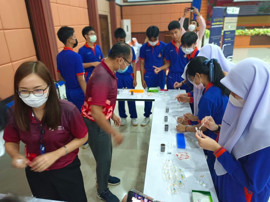 Assoc. Prof. Dr. Warakorn Limbut (Deputy Director of TAB-CoE), and his research team from the Division of Health and Applied Sciences, Faculty of Science, Prince of Songkla University, have transferred the knowledge in electrochemical innovation activities “Miracle of Redox Reactions” at Princess Chulabhorn Science High School Satun, Chalung, Muang Satun, Satun. This talk received feedback from the staff, lecturers, and students from this school.