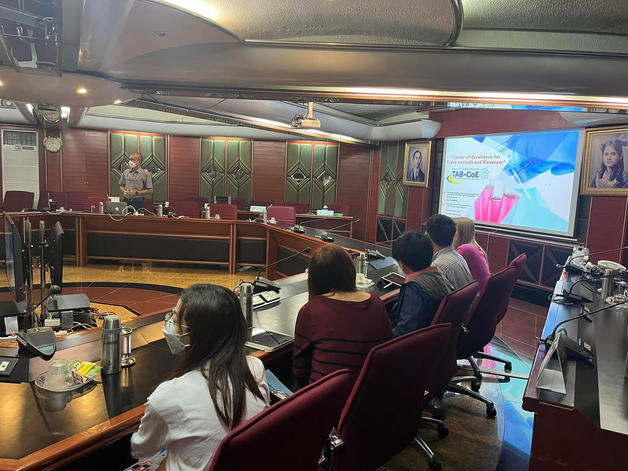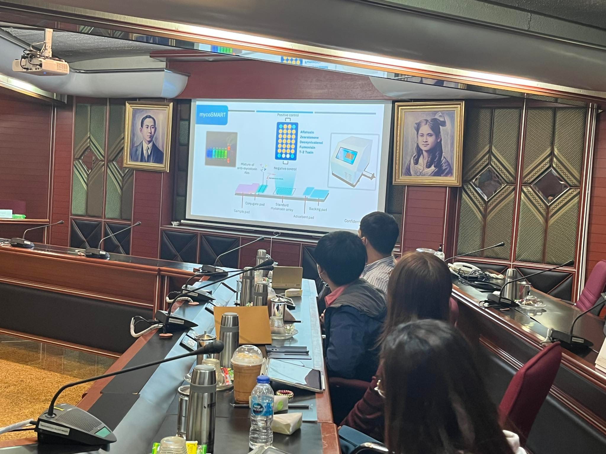 Assoc. Prof. Dr. Chongdee Buranachai, a director of TAB-CoE, and lecturer from TAB-CoE joined the meeting with Dr. Nitsara Karoonuthaisiri from BIOTECH and Dr. Thanasat Sooksrimuang from MTEC and their research team for further research cooperation about the development method for mycotoxin analysis. Morover, professors visited our graduate student research work to exchange research ideas for further opportunities.