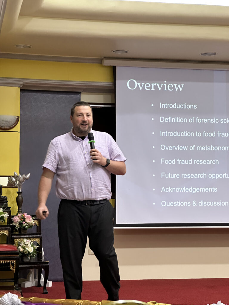 Center of Excellence for Trace Analysis and Biosensor (TAB-CoE), Faculty of Science, PSU welcomed Dr. David F. Thompson from Department of Biomedical Engineering, The Chinese University of Hong Kong, Hong Kong. He delivered a seminar titled “The use of non-targeted analysis for the detection of food fraud” on 15 August 2023 from 1:30 – 3:00 pm. at the Faculty of Science Seminar Room.