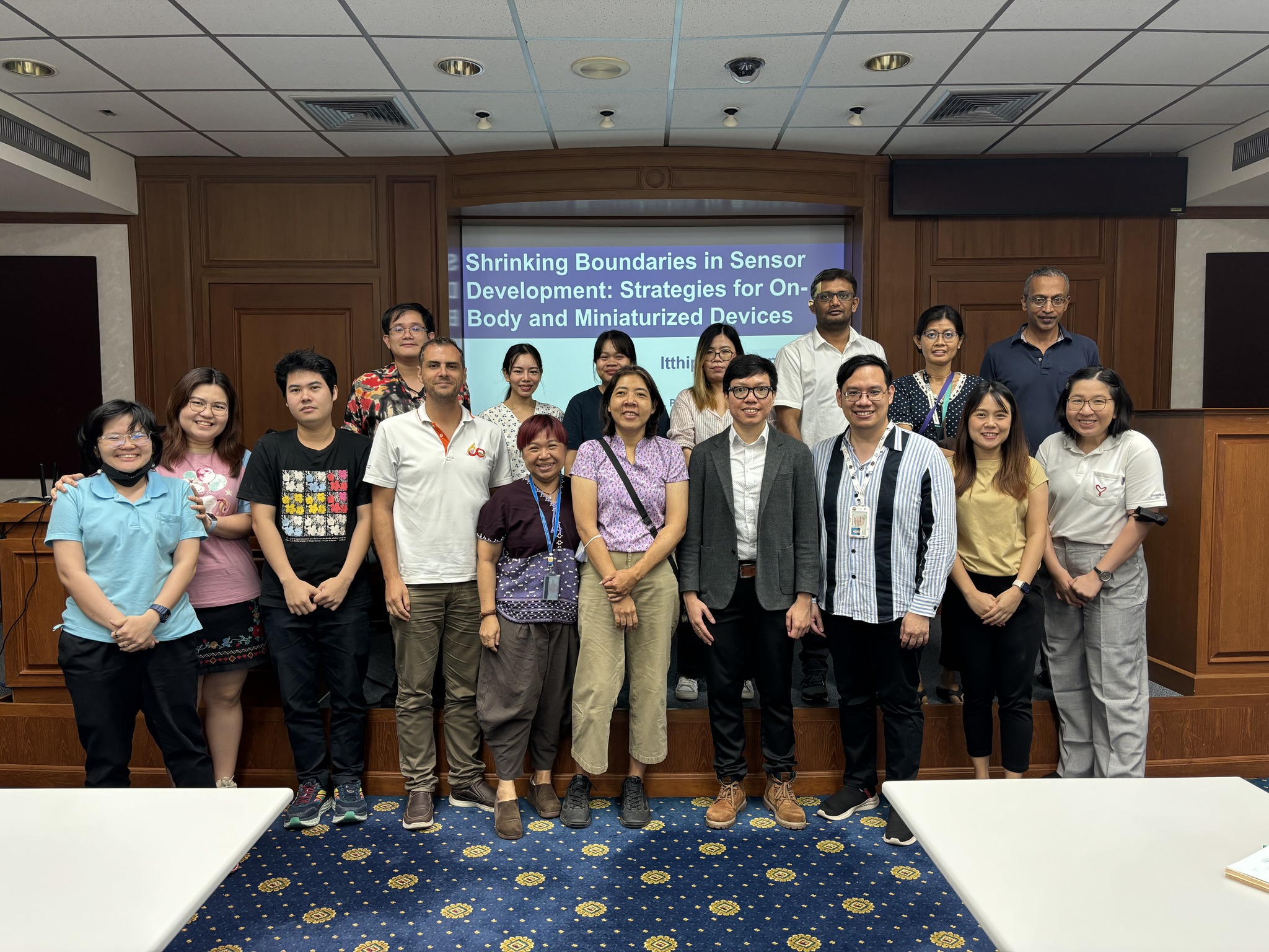 Asst. Prof. Dr. Itthipon Jeerapan, a lecturer from the Division of Physical Sciences, gave a special seminar entitled “Shrinking Boundaries in Sensor Development: Strategies for On-Body and Miniaturized Devices”. This seminar was held by Nanoscience and Nanotechnology Graduate Program, King Mongkut’s University of Technology Thonburi (KMUTT) together with NST694 Special Topics: Science and Technology: From Bench to Life.