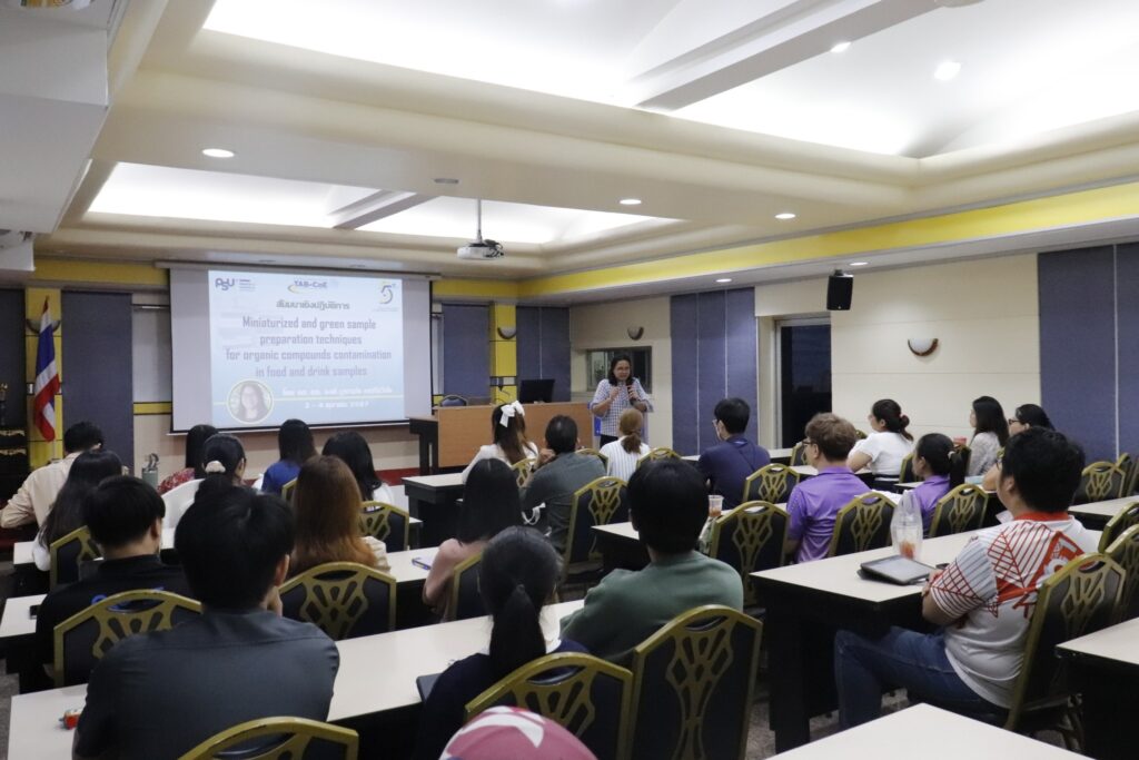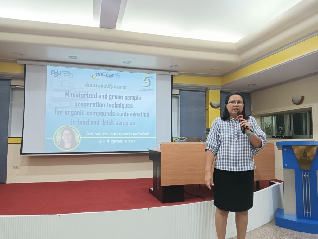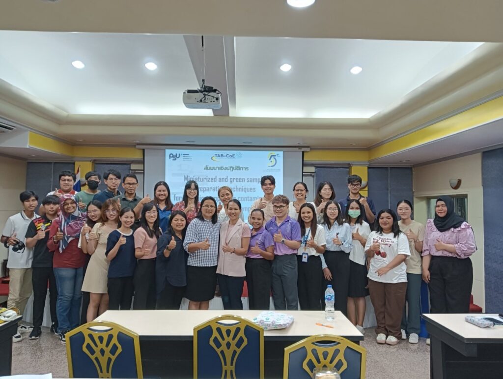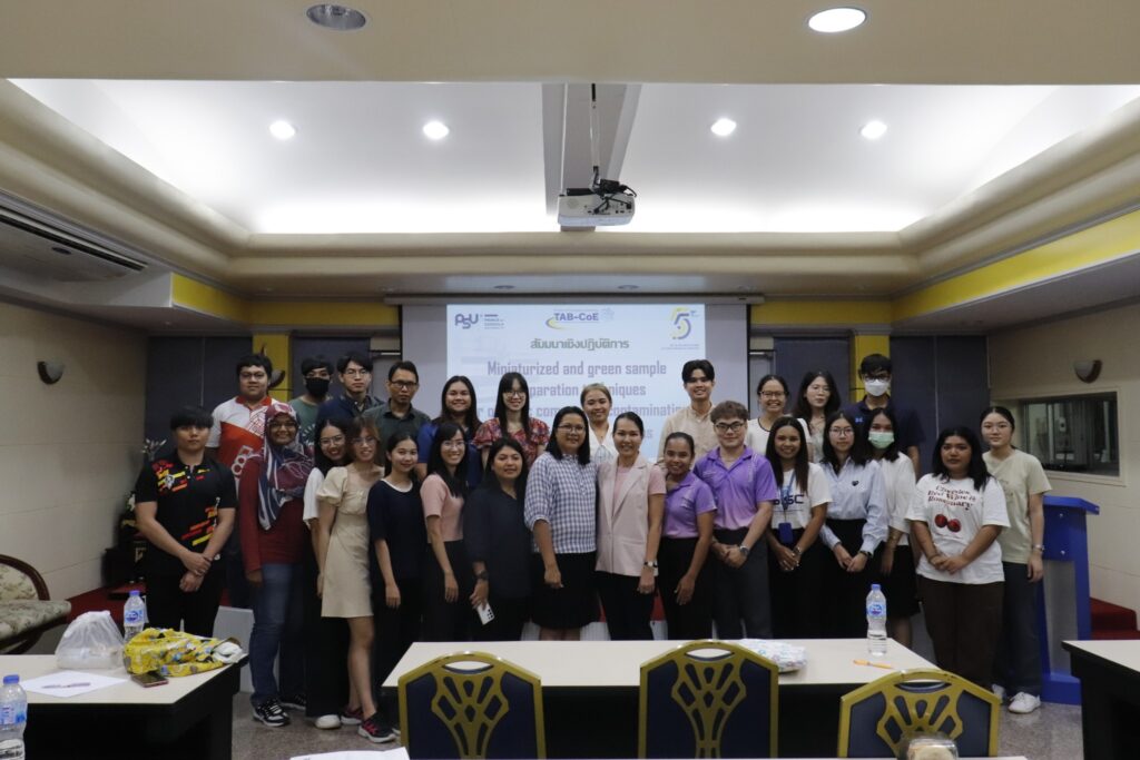 Photos were taken during the workshop under the theme of “Miniaturized and green sample preparation techniques for organic compounds contamination in food and drink samples.” This event was held on October 3-4, 2024. At this event, a lecture by Assoc. Prof. Dr. Chongdee Buranachai was given, and an experiment was done with GC and HPLC instruments with her research team.
