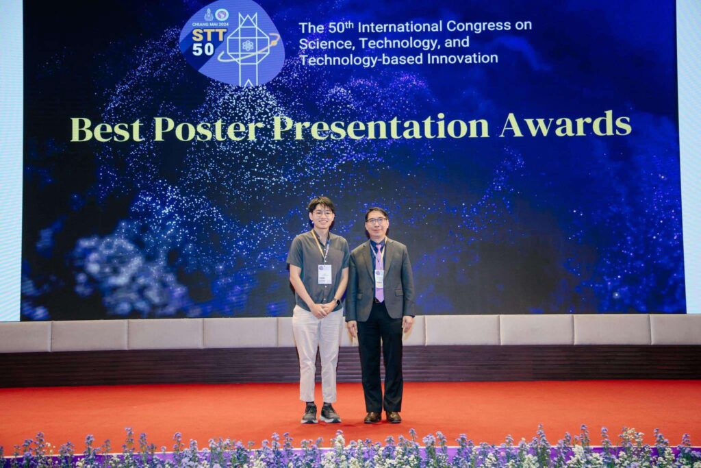 TAB-CoE would like to congratulate Mr. Jakrin Lohanawakul, a master degree student in the Division of Physical Science (Chemistry) international program, for receiving the Best Poster Presentation award for his research titled “TRIPHENYL TETRAZOLIUM SALT-MEDIATED COLORIMETRIC DETECTION OF TRIAMCINOLONE ACETONIDE AND BETAMETHASONE 17-VALERATE” His work was supervised by Assoc. Prof. Dr. Chongdee Buranachai and Dr. Atchara Lomae at The 50 th International Congress on Science, Technology and Technology-based Innovation (STT50).