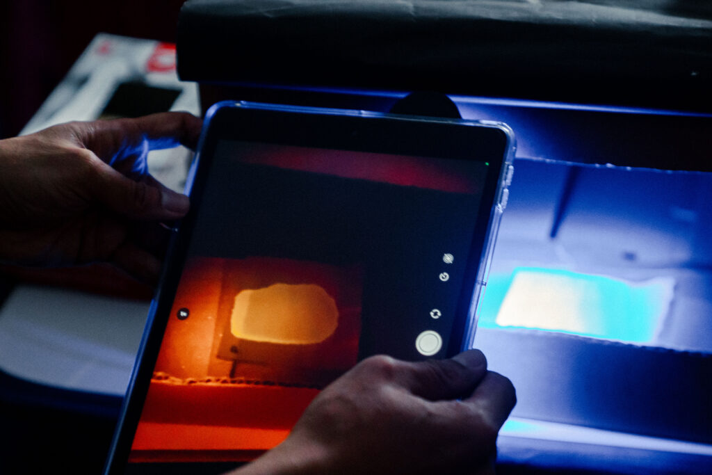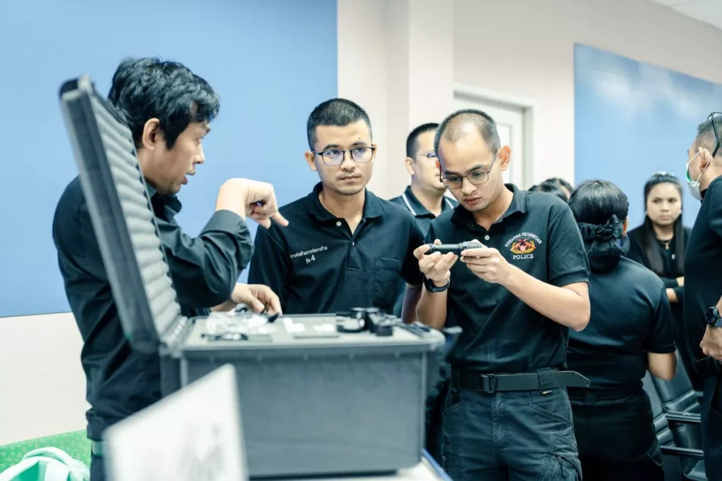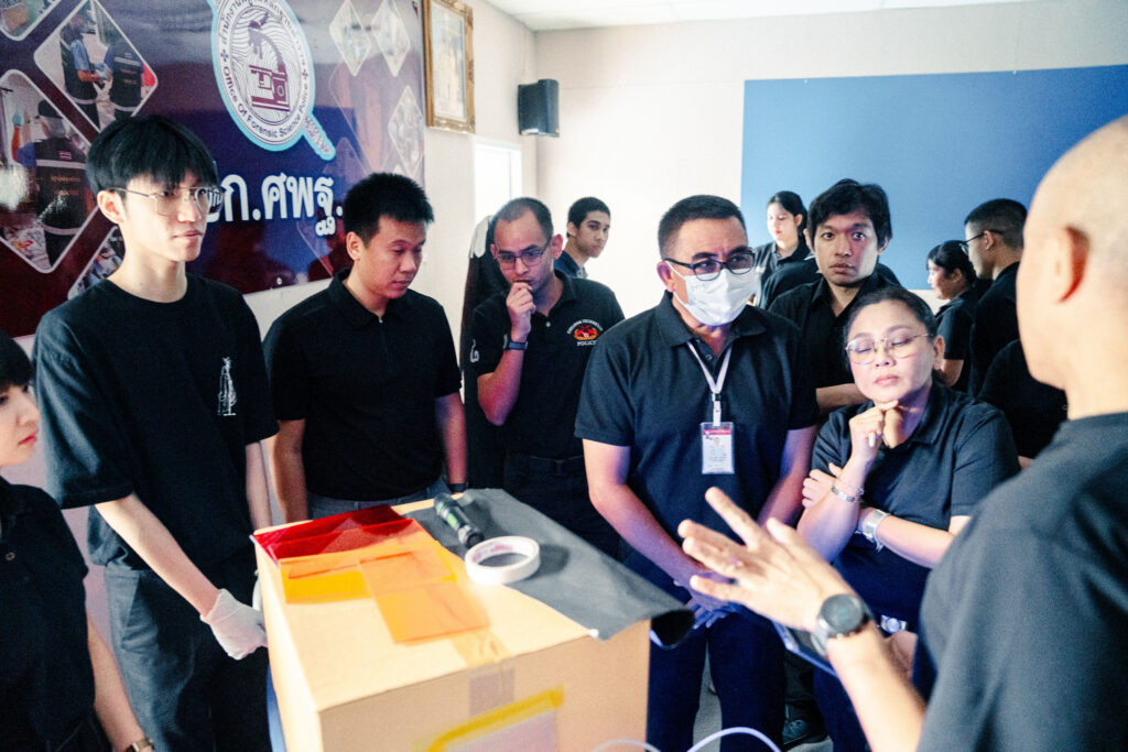 On Friday, October 31, 2025, Assoc. Prof. Dr. Chittanon Buranachai and Dr. Kittirat Phooplub, faculty members of TAB-CoE, together with a research team from the Forensic Science Innovation and Service Center led by Assoc. Prof. Dr. Phuvadol Thanakiatkrai, visited the Police Forensic Science Center 9 in Songkhla to demonstrate the use of an innovative device for detecting biological evidence at crime scenes and for forensic photography, known as “WATSON.” This innovation was developed by researchers from the Faculty of Science, Prince of Songkla University, with research and innovation funding support from the National Research Council of Thailand (NRCT). The event was honored by the presence of Pol. Maj. Gen. Phanu Phitayawetchwiwat, Commander of the Police Forensic Science Center 9, along with forensic officers who attended the demonstration and participated in hands-on trials of the device.