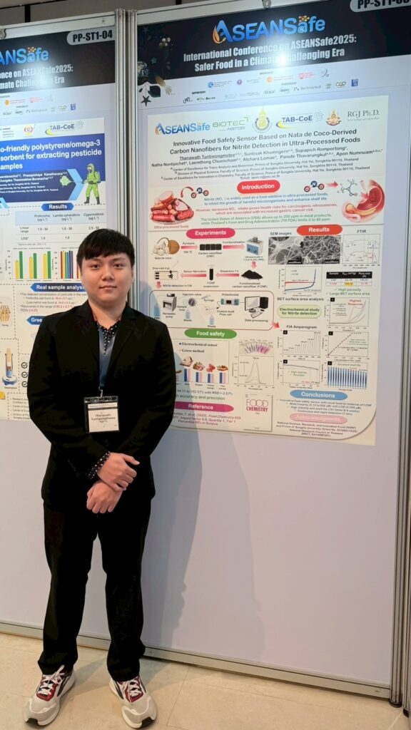4. “Innovative food safety sensor based on Nata de coco-derived carbon nanofibers for nitrite detection in ultra-processed foods” presented by Mr. Thanawath Tuntiwongmetee
