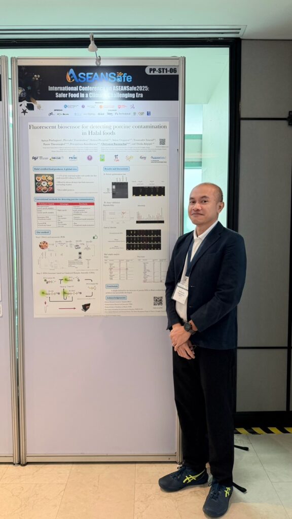 TAB-CoE members participated and presented their research works in ASEANSafe2025: Safer Food in a Climate Challenging Era. This conference serves as a platform to foster collaboration and advance solutions for food safer, more resilient ASEAN region. This year’s conference provides an exceptional opportunity to explore the most pressing challenges and innovative solutions in the areas of safety and security within the ASEAN region. This conference was held on November 19-20, 2025, at Chatrium Riverside Hotel, Bangkok. Their research topics were as follows: