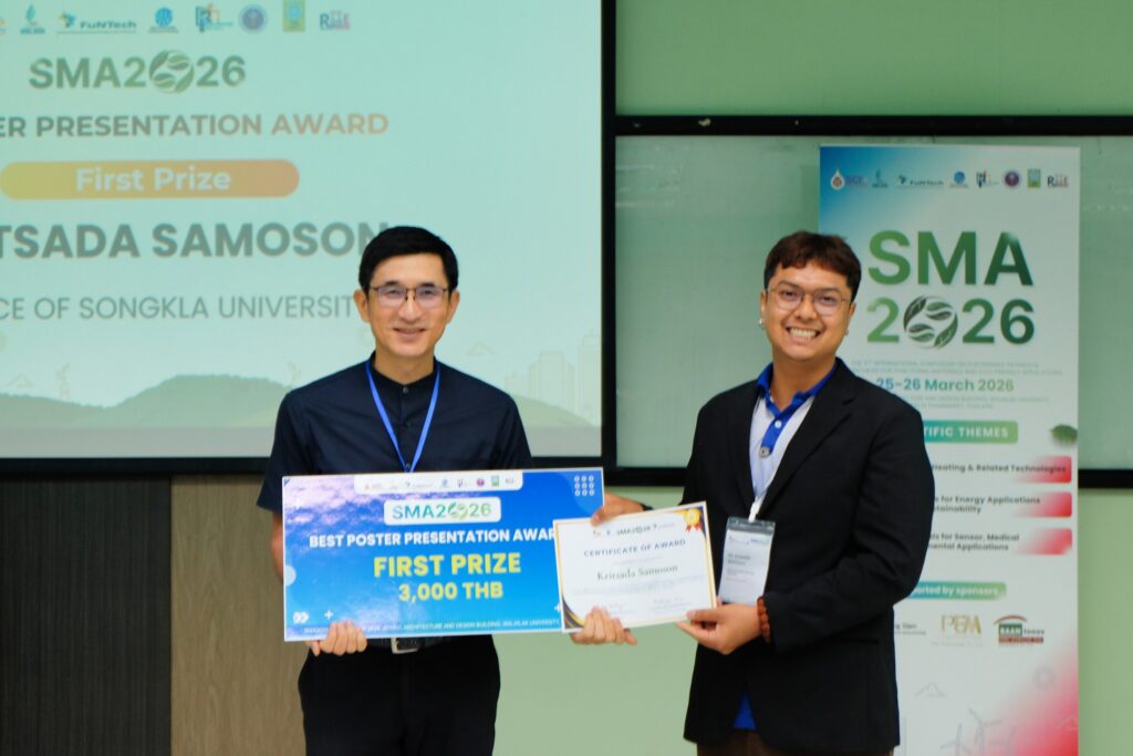 On March 25–26, 2026, Prof. Dr. Warakorn Limbut, Deputy Director of the Center of Excellence, along with Ph.D. students from the Center of Excellence for Trace Analysis and Biosensor (TAB-CoE), Faculty of Science, Prince of Songkla University, attended and presented their research in poster format at the international conference The 3rd International Symposium on Sustainable Pathways: Green Synthesis for Functional Materials and Eco-Friendly Applications (SMA 2026), held at Walailak University, Thaiburi, Thasala, Nakhon Si Thammarat, Thailand.